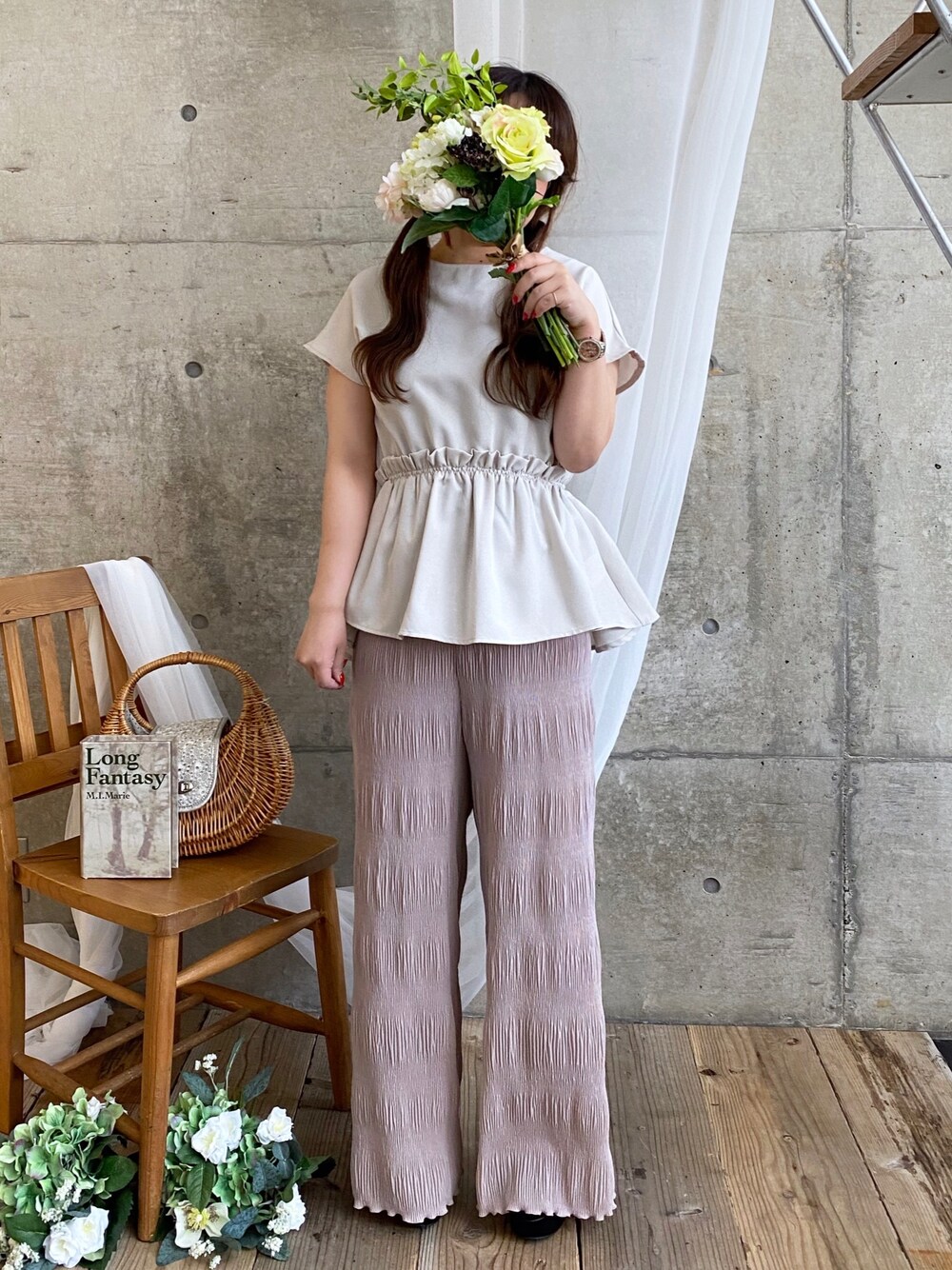 おはようございます😚 昨日も閲覧ありがとうございました✨ 今日はシンプルに纏めてみました✨ アイテムごとにアクセントがあるので シンプルでも可愛いコーデ☺️ 流行りのプリーツパンツは足が長く見えるし最高🤗💕