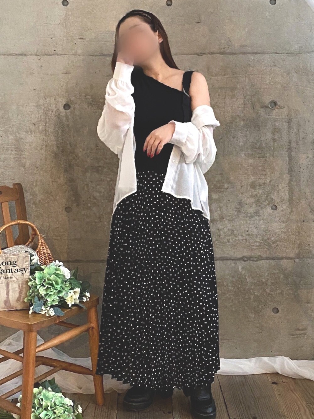 * 𝙠𝙧𝙣 *のベスト「アシメニットベスト」を使ったコーディネート