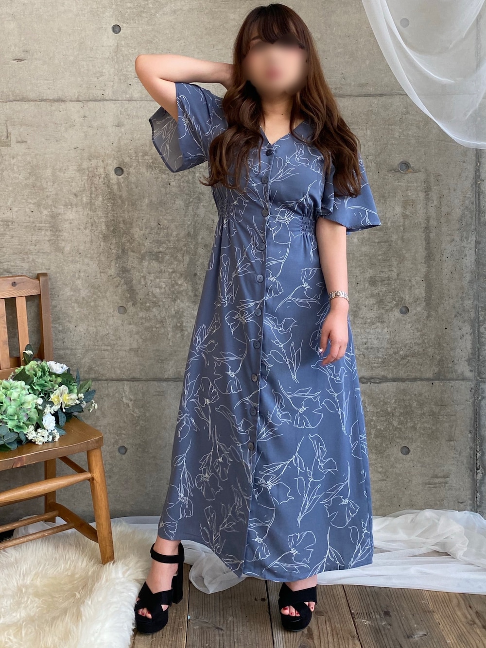 * 𝙠𝙧𝙣 *のワンピース「Ⅴネック花柄ワンピース」を使ったコーディネート