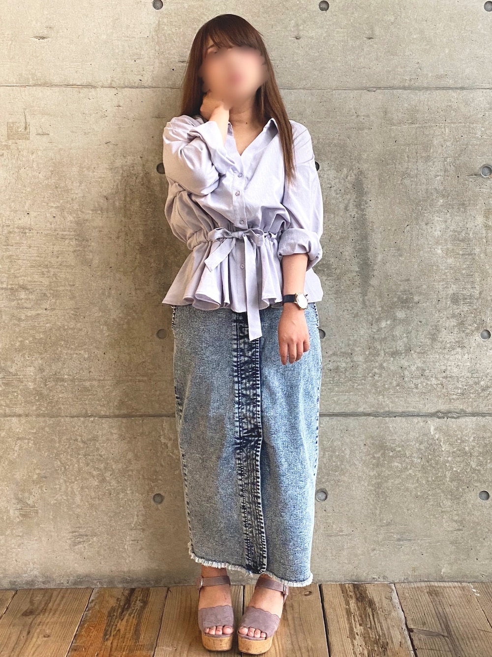 今日のコーデ🎀 ミサリナのペプラムブラウスにwcloさんのデニムスカート合わせたよ✨ すごくスカート履きやすい、、、 これは買いだ、、