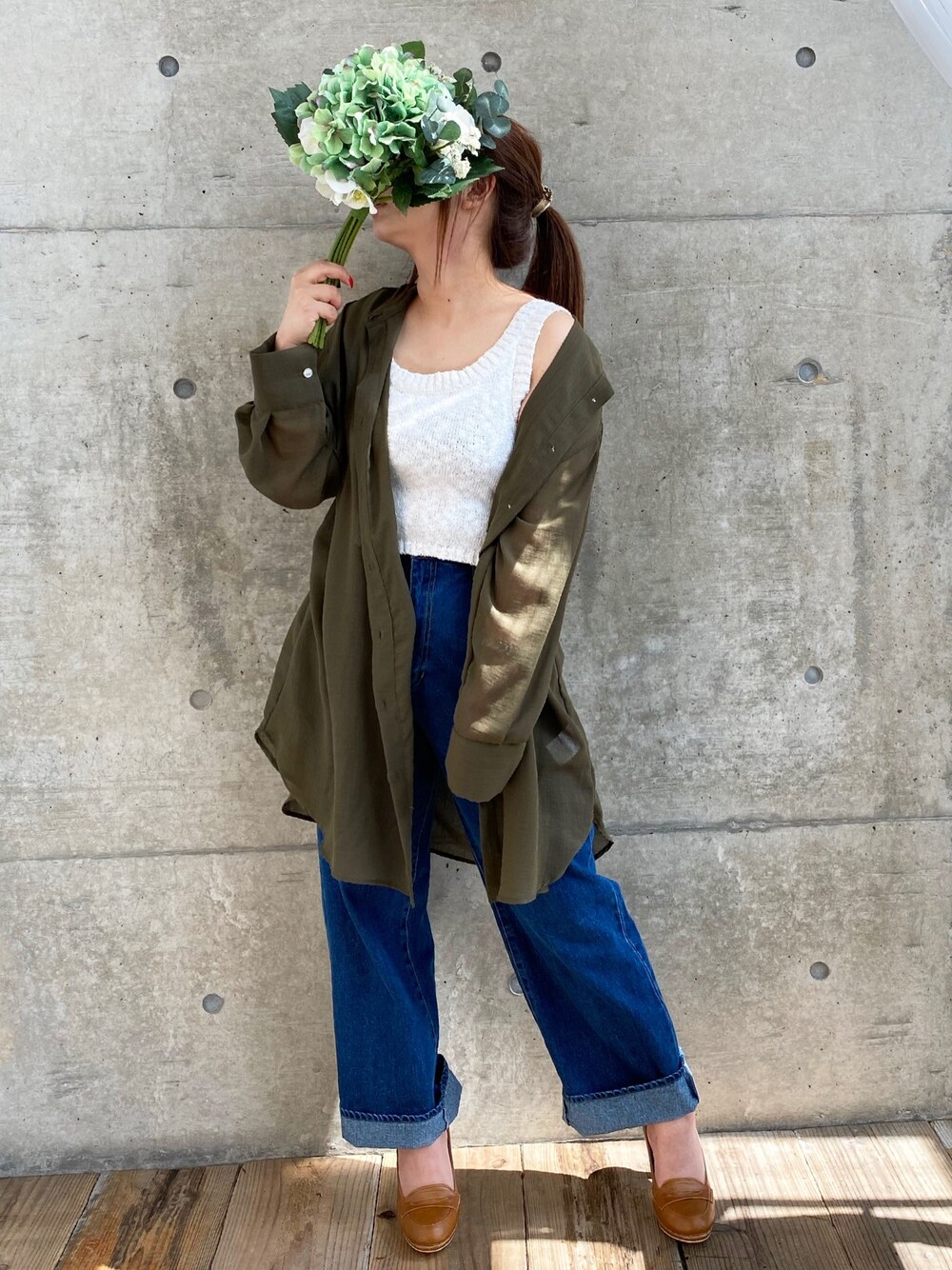 * 𝙠𝙧𝙣 *(Mysa&Liina)のシャツ/ブラウス「バンドカラーロングブラウス」を使ったコーディネート