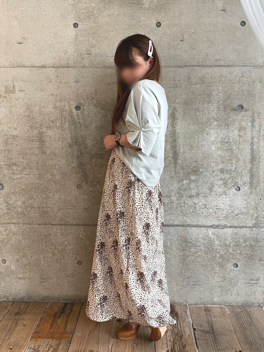 こんにちは☺️ GUさんのタックスリーブTOPS 990円です😳✨ ミサリナの柄スカートと合わせてみました😘💕 めちゃめちゃプチプラコーデ😳✨ 今日の夜はこのトップスで着回しコーデインスタに上げるよ🥰 インスタも気が向いたらフォローお願いします🙇♀️