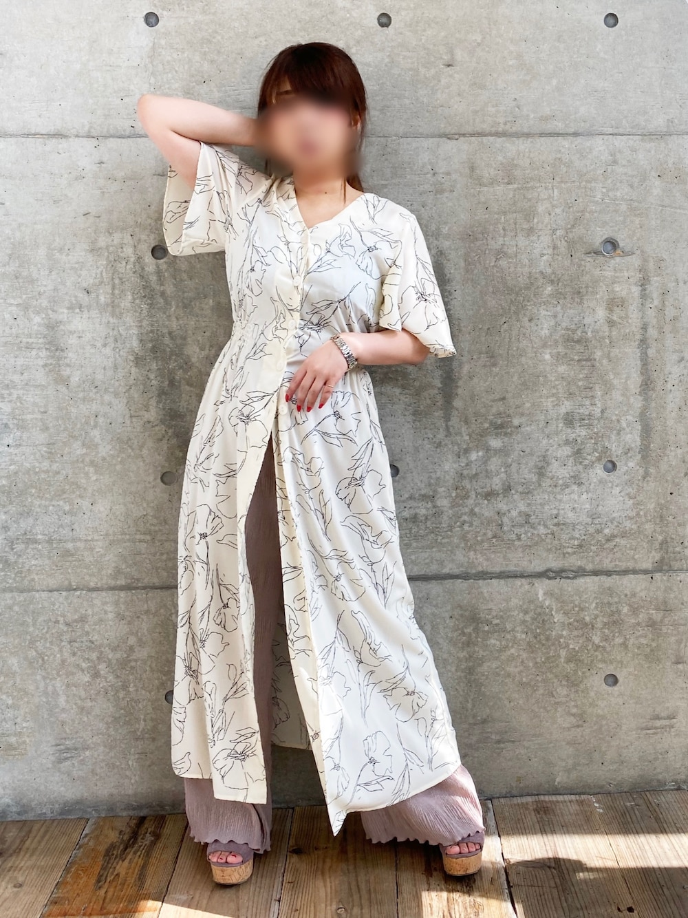 おはようございます✨ 今日も閲覧ありがとうございます🙇♀️ ラフなコーデが最近好きなのと、ウエストマークして身長ごまかすの好き😳 ミニマムな世界を生きてるけどドキドキ憧れのモデルさんみたいなコーデしたくなるとです🙄 このワンピはウエストキレイに見せるためにゴムシャーリングが入ってます☺️ 裏地はないので一枚できるよりレイヤードして着たり、羽織にしてみたり、、ブルーとブラックは透けが気にならないので、ワンピとして着ちゃうかも🥺笑 このコーデには大好きなシャーリングパンツと合わせました🎀 淡色感がたまらんです😌💕
