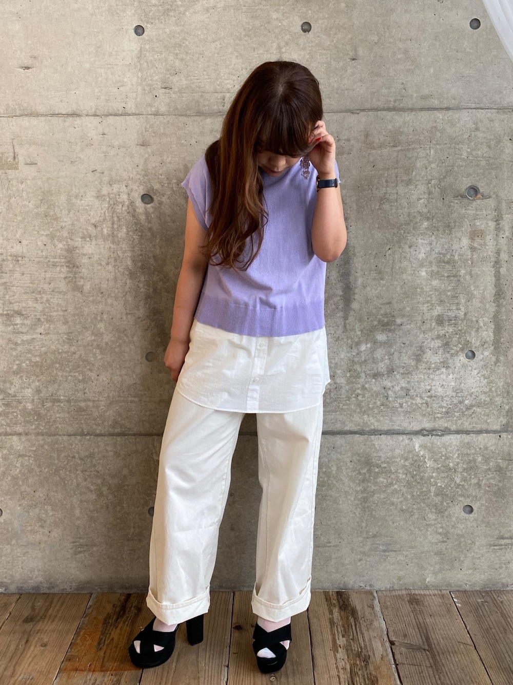 おはよう御座います✨ 一枚でコーデが決まる! レイヤードニットはフレンチスリーブなのです👍🏻 うしろはリボン仕様🎀 ラベンダーが好きすぎる件について、、、😳💕