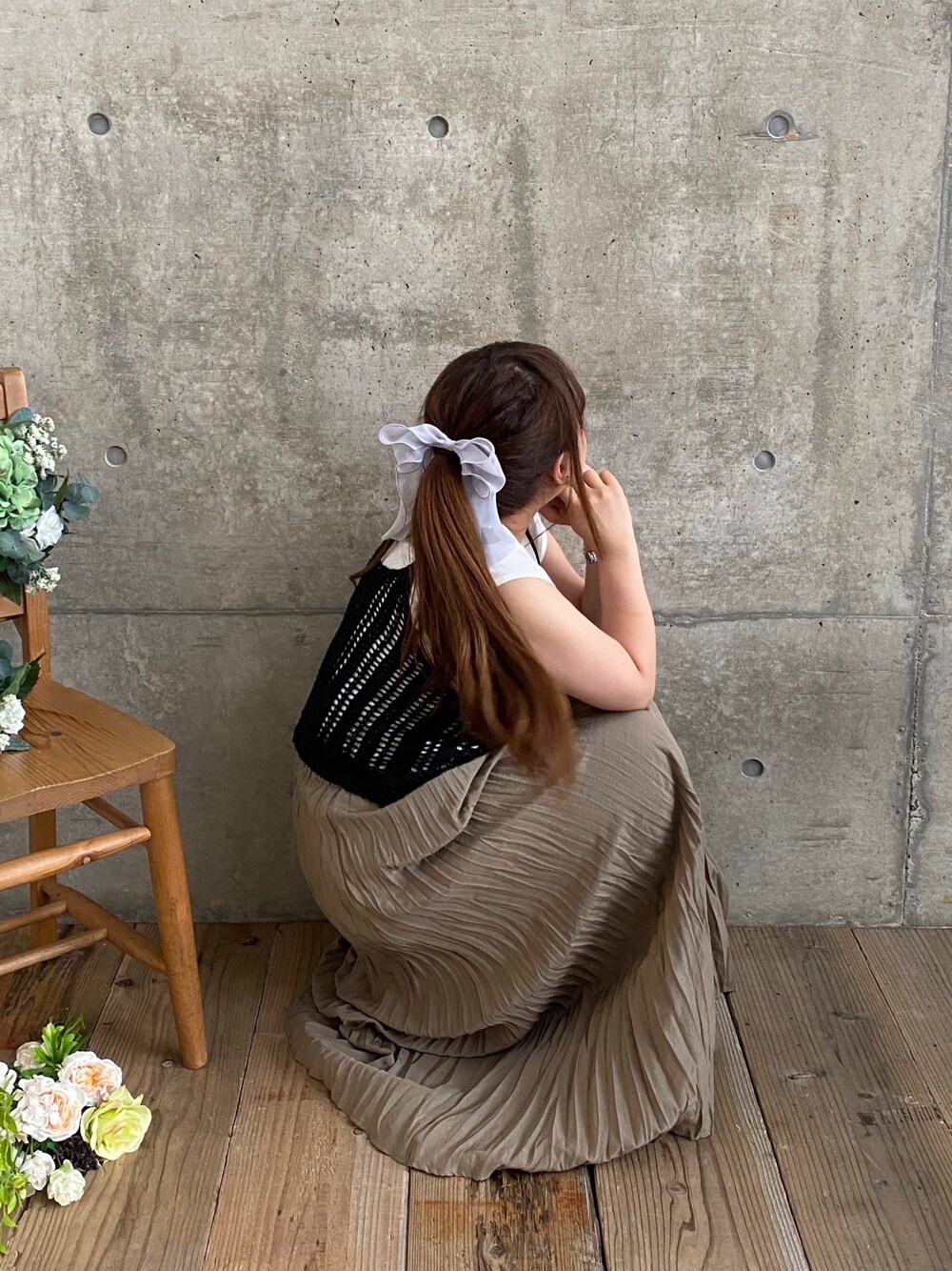 おはようございます🎀 本日も閲覧ありがとうございます✨ カジュアルコーデ! リラックススタイルがやっぱり良い☺️ ざっくりメッシュのビスチェも抜け感があって🙆♀️🙆♀️🙆♀️ クリンクルスカートは落ち着いたモカーキ色☺️ ロングスカートなのに涼しげなのです😳😳 1週間って早ーい🥺