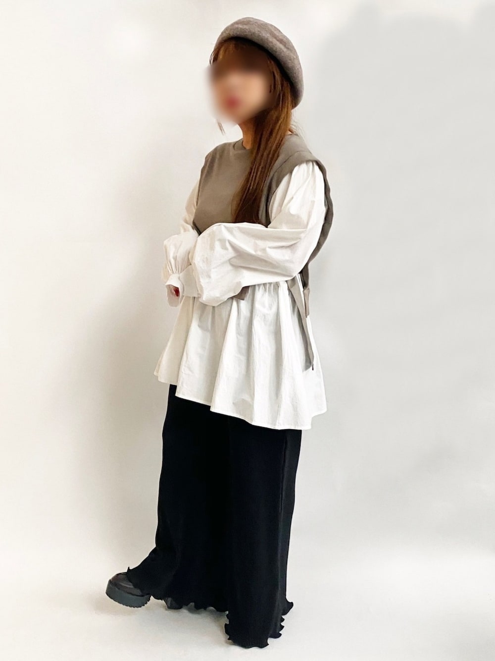 * 𝙠𝙧𝙣 *のアンサンブル「ベストドッキングプルオーバー」を使ったコーディネート
