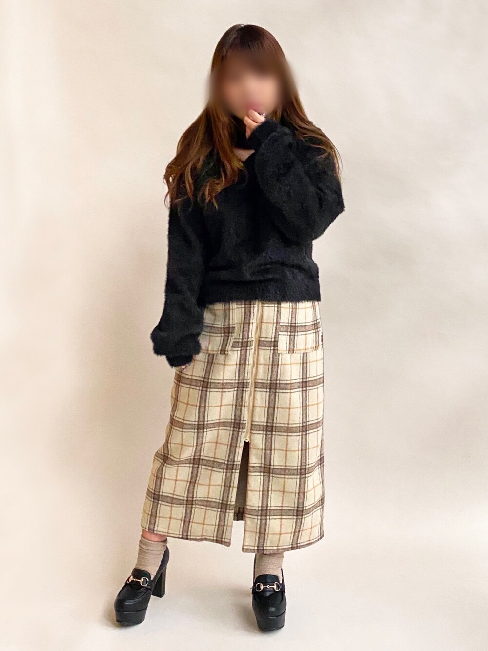 * 𝙠𝙧𝙣 *のニット/セーター「シャギーチョーカープルオーバー」を使ったコーディネート