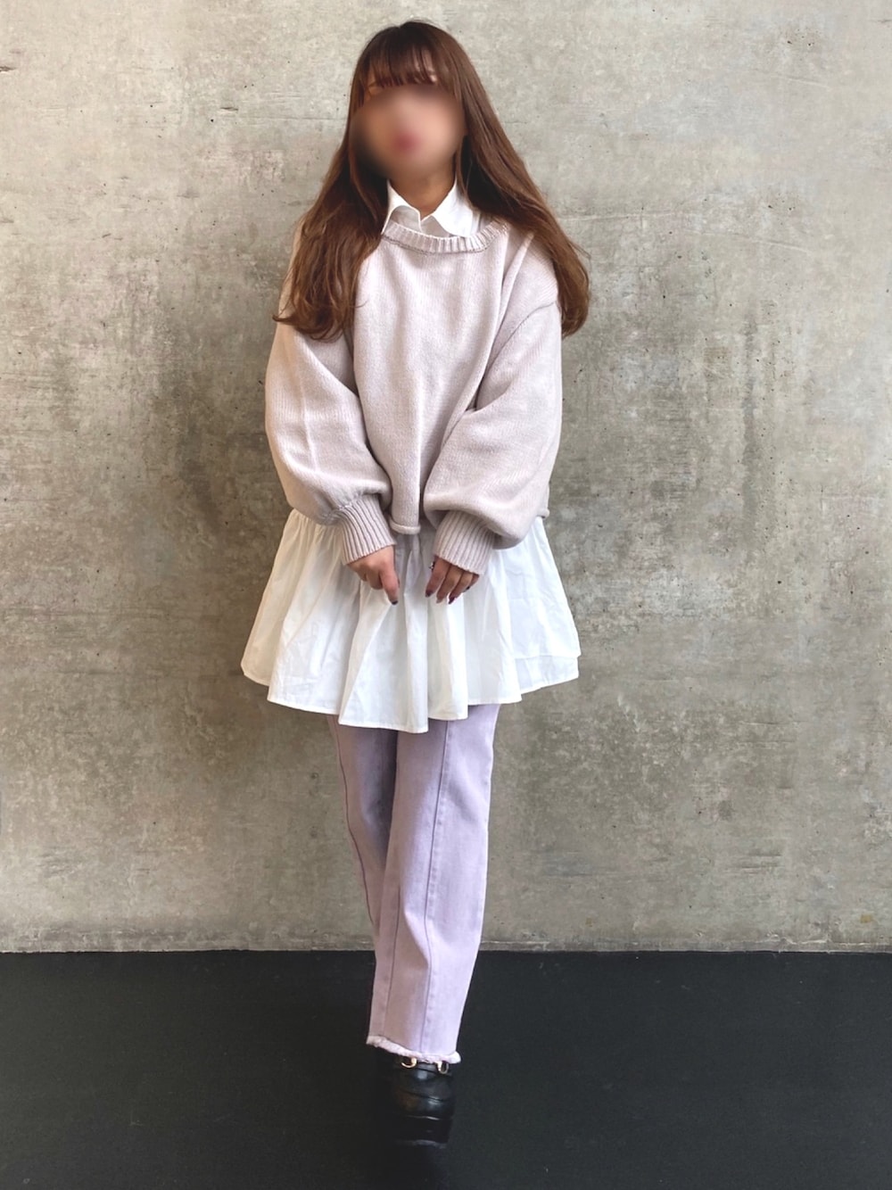 * 𝙠𝙧𝙣 *のニット/セーター「バックシャンレースアップクロップニット」を使ったコーディネート