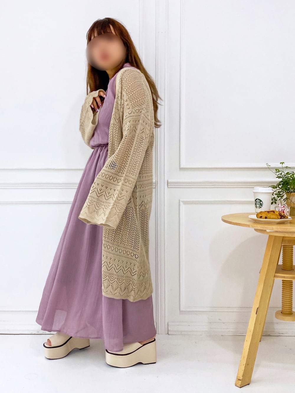 おはようございます🌞 お久しぶりになってしまう、、、 生きてます! ノースリのピンクワンピが可愛くて! 二の腕コンプレックスのわたしには透かしカーデ合わせで誤魔化し誤魔化し😘