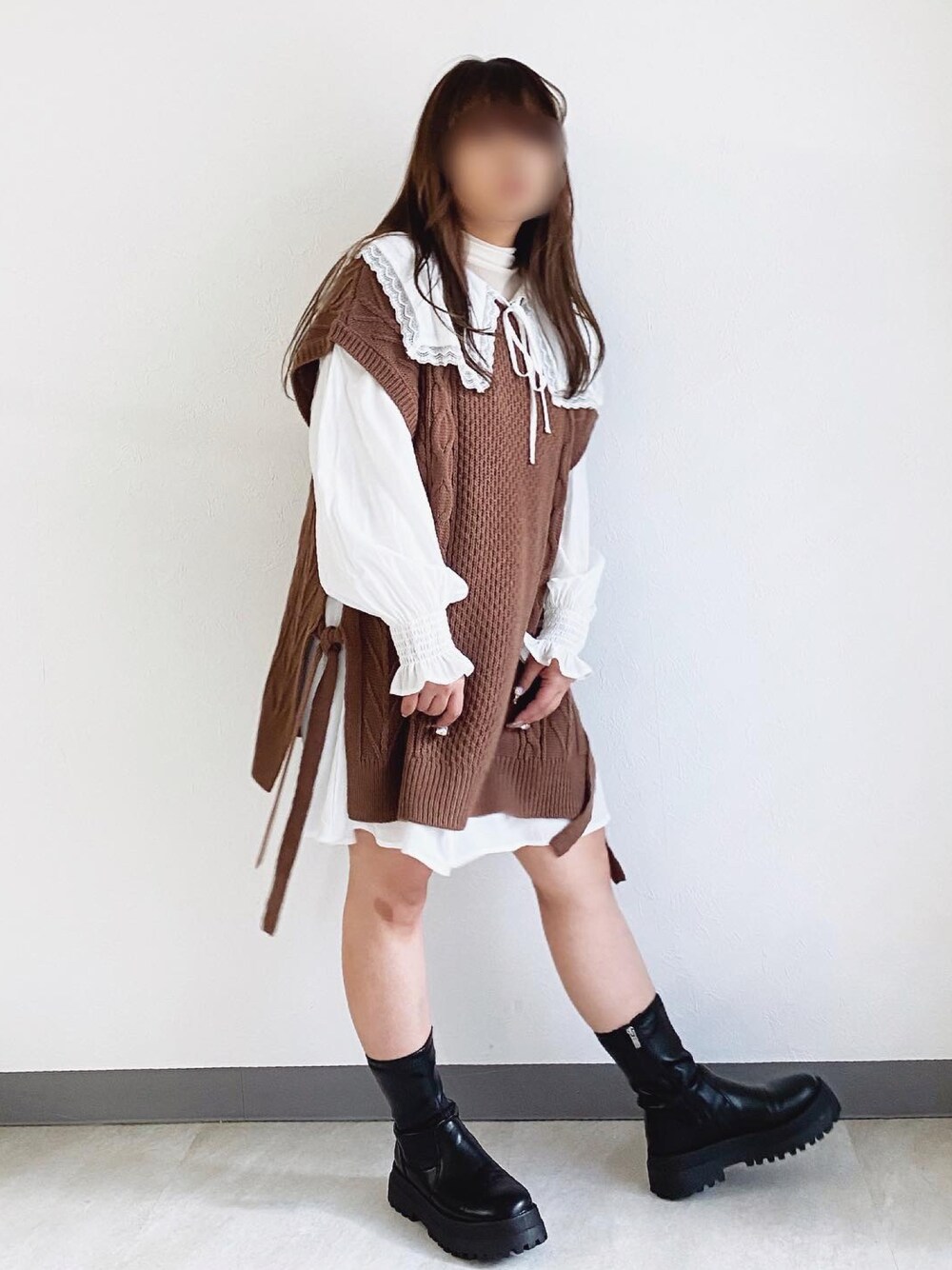 * 𝙠𝙧𝙣 *(Mysa&Liina)のベスト「BIG衿ブラウス×ニットベストセット」を使ったコーディネート