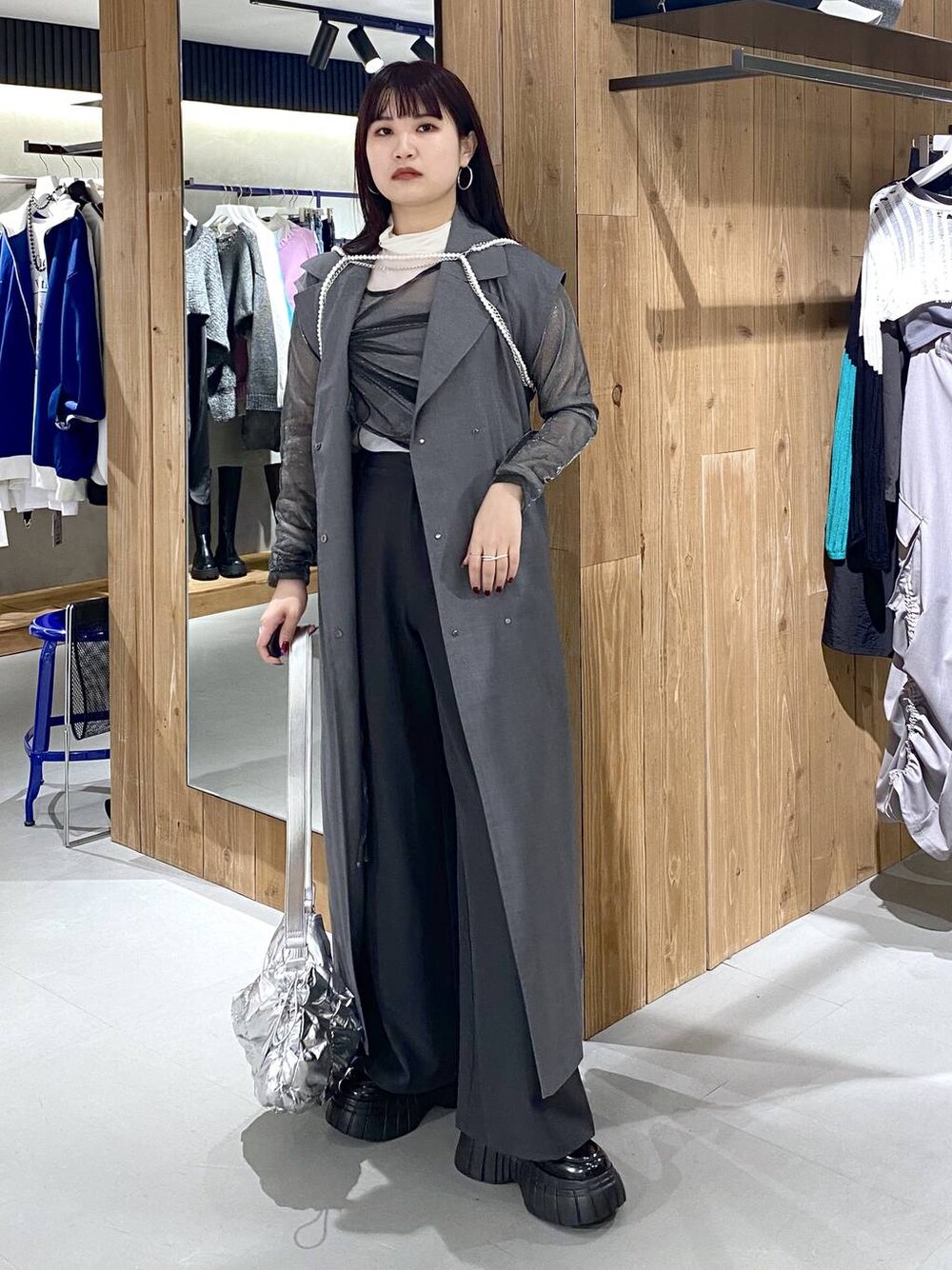 レイヤードコーデ☑️ シアー×シアーとロングジレにもなるトレンチコートが大優勝🥇✨ さらにハーネスレイヤードで上級モードスタイリング!!! 最新情報【】こちらから更新してます✨是非フォローお待ちしてます✨