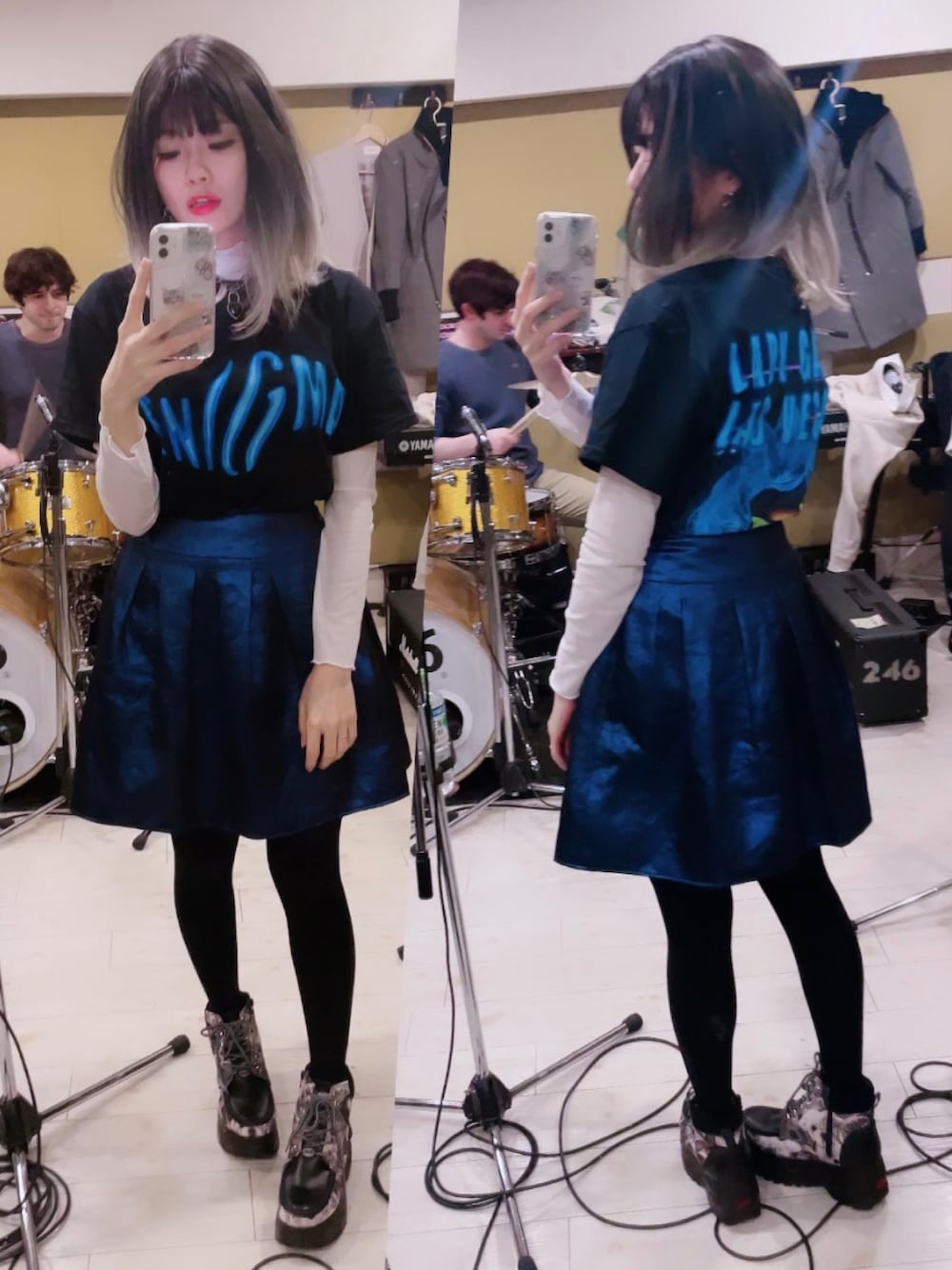 今までずーーーっとちゃんと言えてなかったんですが、いつもいいね❤️や素敵なフォルダ📁にinしていただいて本当に本当にありがとうございます。゚(゚´ω`゚)゚。💓 自己満で始めたWEARですが、今ではとっても励みになっています (🍎´v`🍎) 私もそろそろフォルダ作りますねっっ🥺✨ 🦋・:*+🦋・:*+🦋・:*+🦋・:*+🦋・:*+🦋・:*+🦋 誕生日プレゼントに大好きなLADY GAGAのTシャツをもらったので、さっそくスタジオに着て行きました🎁🥰 ANAYIではちょっと珍しいブルーのグリッタースカートを合わせて、全体的にブルーなコーデにしてみた🥳💙 そしてそしてTシャツのインパクトにも絶対負けない厚底スニーカーもスーパーお気に入りッッ😤👟 なんせ、柄が可愛すぎるんだわさ‼️😭✨🐈⬛🐇