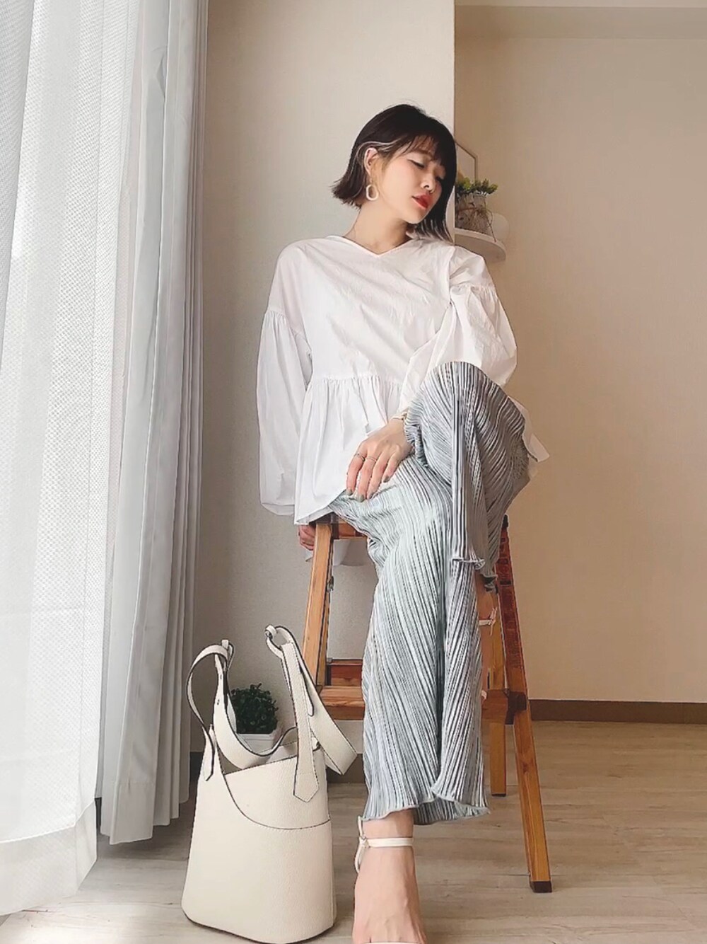 🍓mako🍓のシャツ/ブラウス「ボリュームスリーブフレアブラウス」を使ったコーディネート