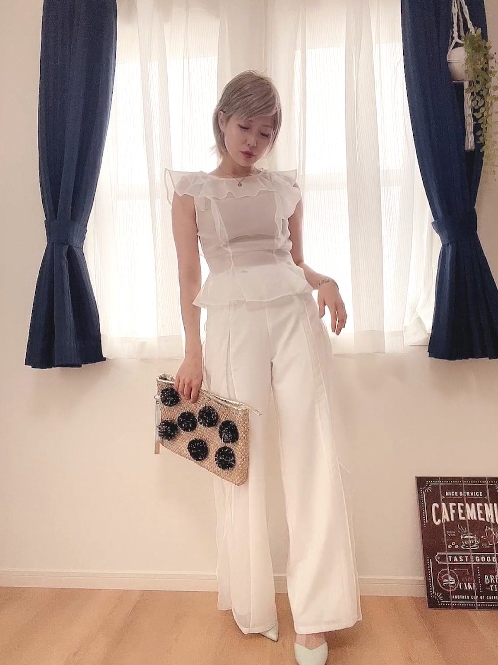 キレイな色のパンプスを買ったのでちょっとだけ大人なホワイトコーデで合わせてみた🩵 あ、もちろんウニバッグも忘れずに🥺🫰🏻🦠笑