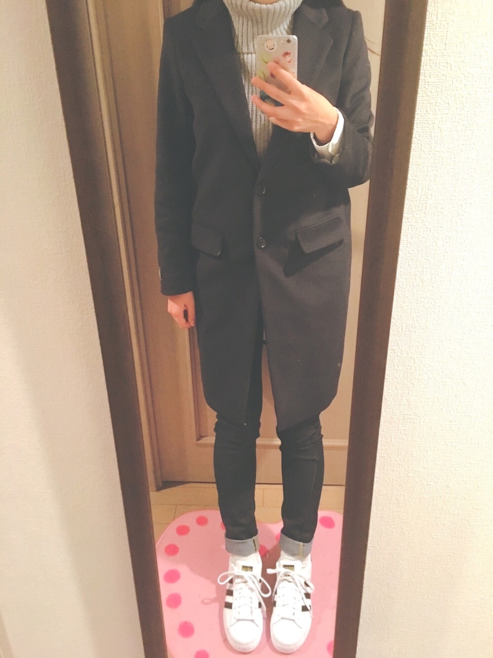 チェスターコートが好きすぎる、、、 adidasはじめて履きました☺︎ UNIQLOのタートルネックは990円で そこからクーポンあったので 745円で購入しました(笑) 見てくださった方ありがとうございます🙇🏻