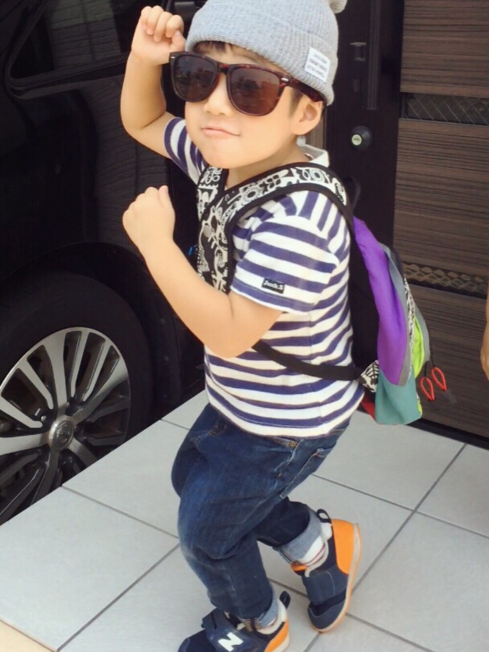 長男!! カメラ向けるとちょける〜! 顎出しすぎー!(笑)
