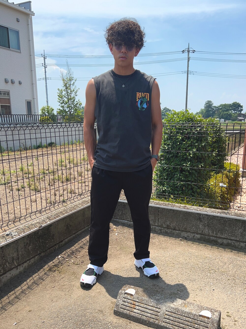 松嶋 瑞樹のタンクトップ「RVCA/ルーカ ルーズシルエット ノースリーブ ロックTシャツ/バックプリント タンクトップ BC041-364」を使ったコーディネート