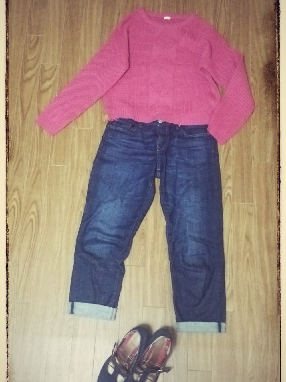今日はGUのhot pinkなニットが主役♪ 色で冒険するときは、シンプルなシルエットで(^^)