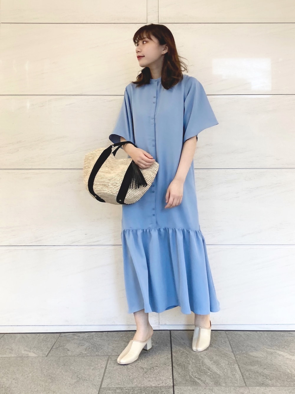 閲覧ありがとうございます🙇♀️ ブルーのティアードワンピースと白のシューズで爽やかに🐳