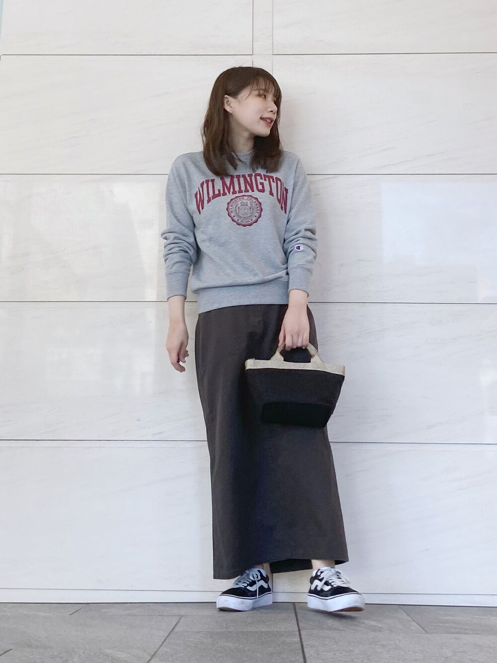 はつね(SENSE OF PLACE 東急プラザ蒲田)のスウェット「【Champion】人気のカレッジロゴ。クルーネックスウェットシャツ」を使ったコーディネート
