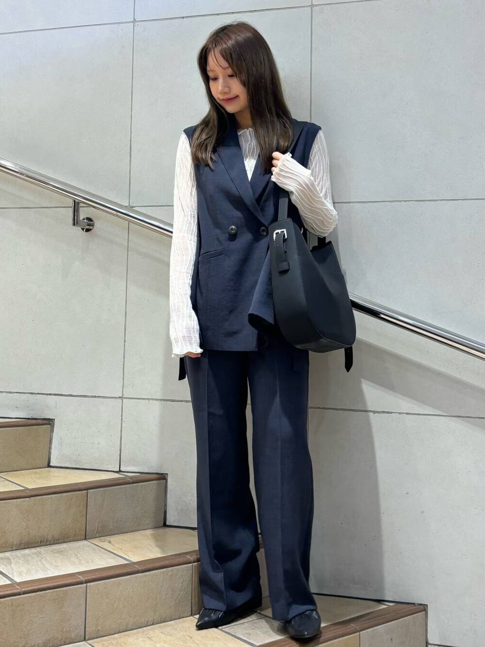 オンオフ使えるコーデにしてみました! ジレとパンツはセットアップ対応ですがそれぞれでも使いやすいシンプルなデザイン◯