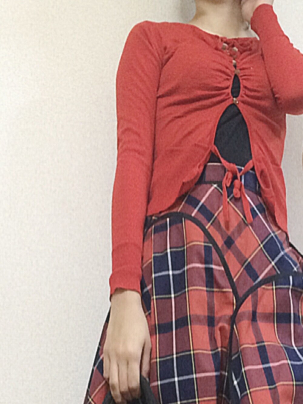 ヴィヴィアンの赤って朱色みたいなオレンジで可愛いですよね。 写真には見えてないですが リングとバッグもヴィヴィアンだったりします