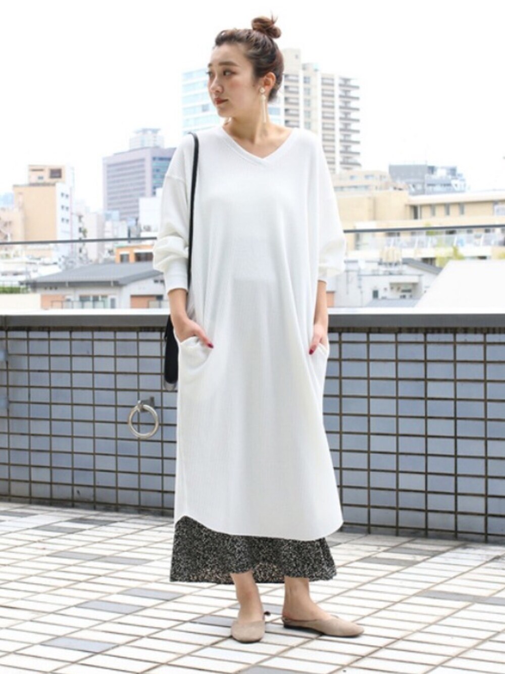 本日販売開始! 人気のワッフルサーマルVネックワンピース👗にオフホワイトが登場。 一足早く、春夏気分にマストバイなホワイトワンピが販売開始です!