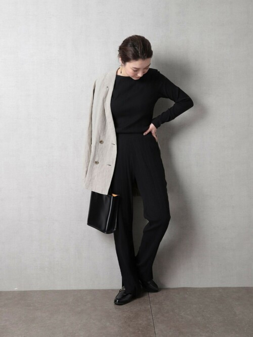 セットアップが気分♡ 変形テレコのロンTとカットソーパンツはオールシーズン使える優秀アイテム! ボトムスはスリット入りなのでブール合わせも◎