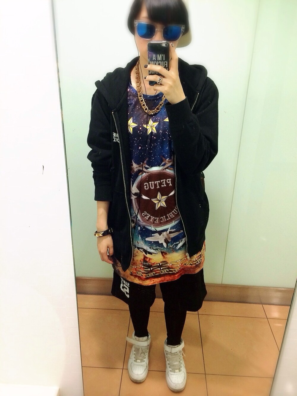 東京来ましたよ〜〜〜 今日はライブ(^O^) 今年初サングラス〜 サングラス/BUBBLES ハーパン/H&M レギンス/H&M スニーカー/NIKE