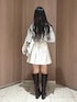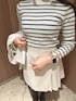 柔らかい春カラーのセットアップと、シンプルにボーダーのニットを合わせてみました! 細やかなラメがフェミニンな風合いを放つ、どんなスタイルにも取り入れやすいベーシックなデザインが魅力のトップスになっています🎶 モデル:148センチ 着用サイズ ジャケット:Sサイズ トップス:フリーサイズ スカート:Sサイズ ブーツ:Mサイズ