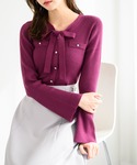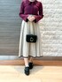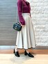ビジューボタンが華やかなボウタイニットです💖 鎖骨映えするネックラインと細身のボウタイデザインがエレガントさを演出してくれます🎶 袖がややフレアになっていて手元を華奢に見せてくれるのも嬉しいポイントです☺️ シンプルでコーディネートしやすいフレアスカートです! 裾に配色パイピングを施して動くたびに揺れる裾が際立つデザインが可愛いです👌