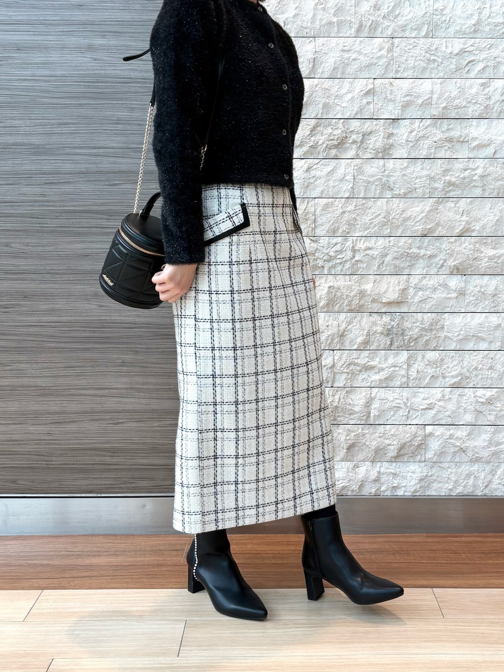 繊細にラメがキラめくフェザーヤーンカーディガンです✨ コンパクトなクロップド丈がウエスト位置を高く見せてくれます👌 コーディネートに華やかさをプラスしてくれるアイテムです◎ 華やかさを演出するラメツイード生地で仕立てられたスカートです💖 タイトシルエットで脚のラインをすっきり魅せてくれます🥰 便利なサイドポケット付きも嬉しいポイントです🎶