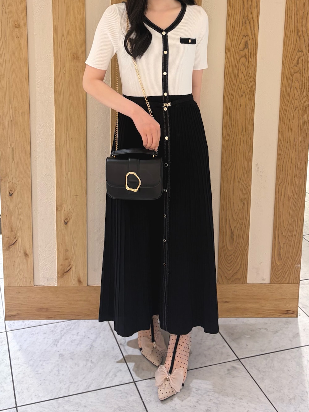 天王寺ミオ本館店(MISCH MASCH 天王寺ミオ本館店)のワンピース「2026春夏新作 ラメ配色AラインVネックニットワンピース」を使ったコーディネート
