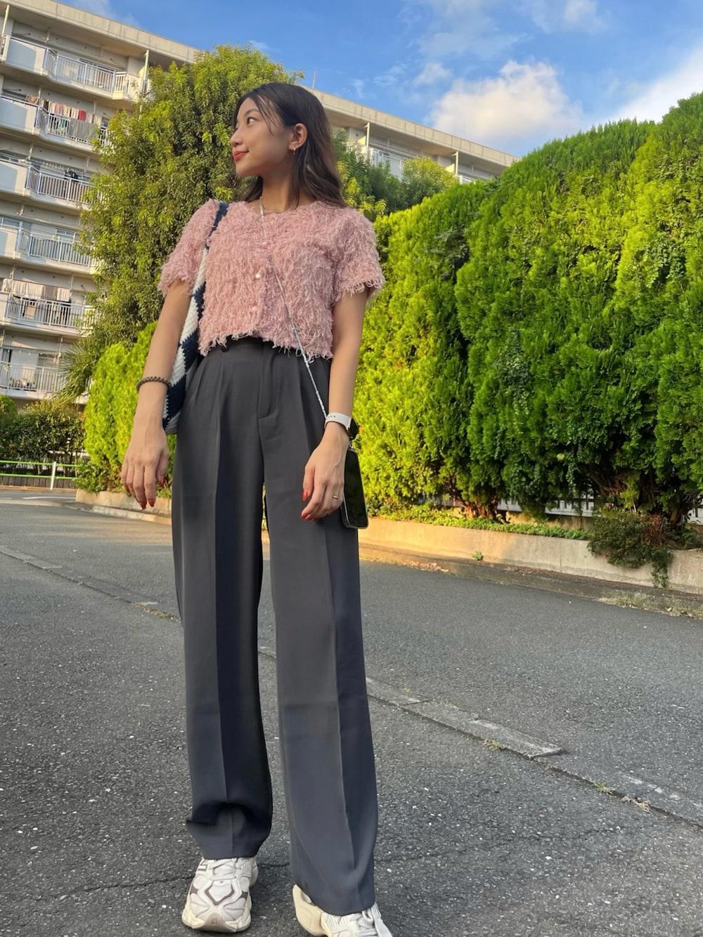 akn のスラックス「【 シリーズ累計販売枚数25万枚突破! 】me+em select(ミームセレクト)太ベルトハイウエストカラータックスラックス《 全30色展開 》★」を使ったコーディネート
