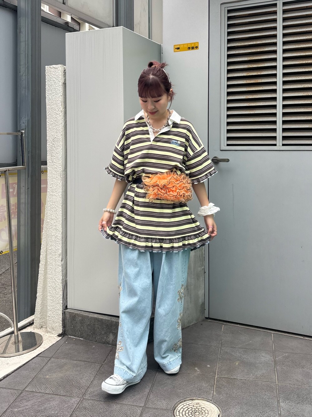 momo(CIAOPANIC TYPY)のチュニック「【HELLO.SANFRANCISCO/ハローサンフランシスコ】ロゴ刺繍ラガーシャツチュニック」を使ったコーディネート
