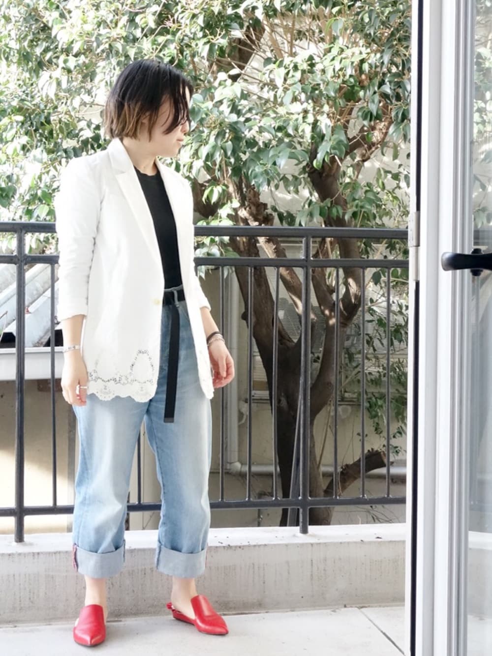 水無川ミワのデニムパンツ「C'est pas Grave(セパ・グラーヴ) バギーデニムパンツ 星プリント」を使ったコーディネート