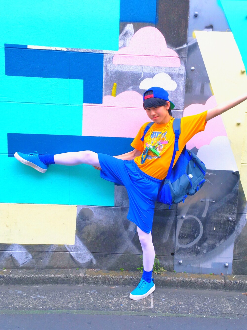 ブルー系のその他パンツ、ブルー系のスニーカー、ホワイト系のタイツ/ストッキングを着用したメンズの春コーディネートの1枚目の写真