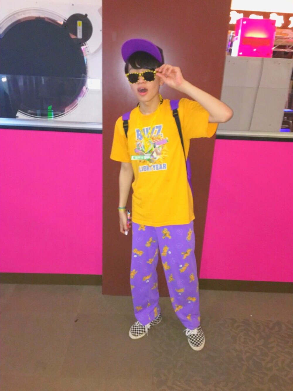 パープル系のその他パンツを着用したメンズの春コーディネートの1枚目の写真
