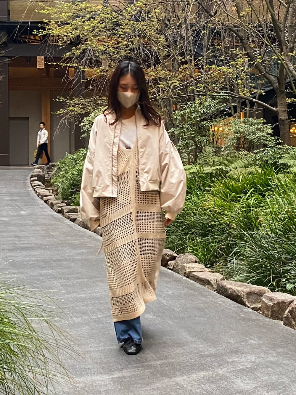 manaのワンピース「マルチWAYメッシュ編みジレワンピース」を使ったコーディネート