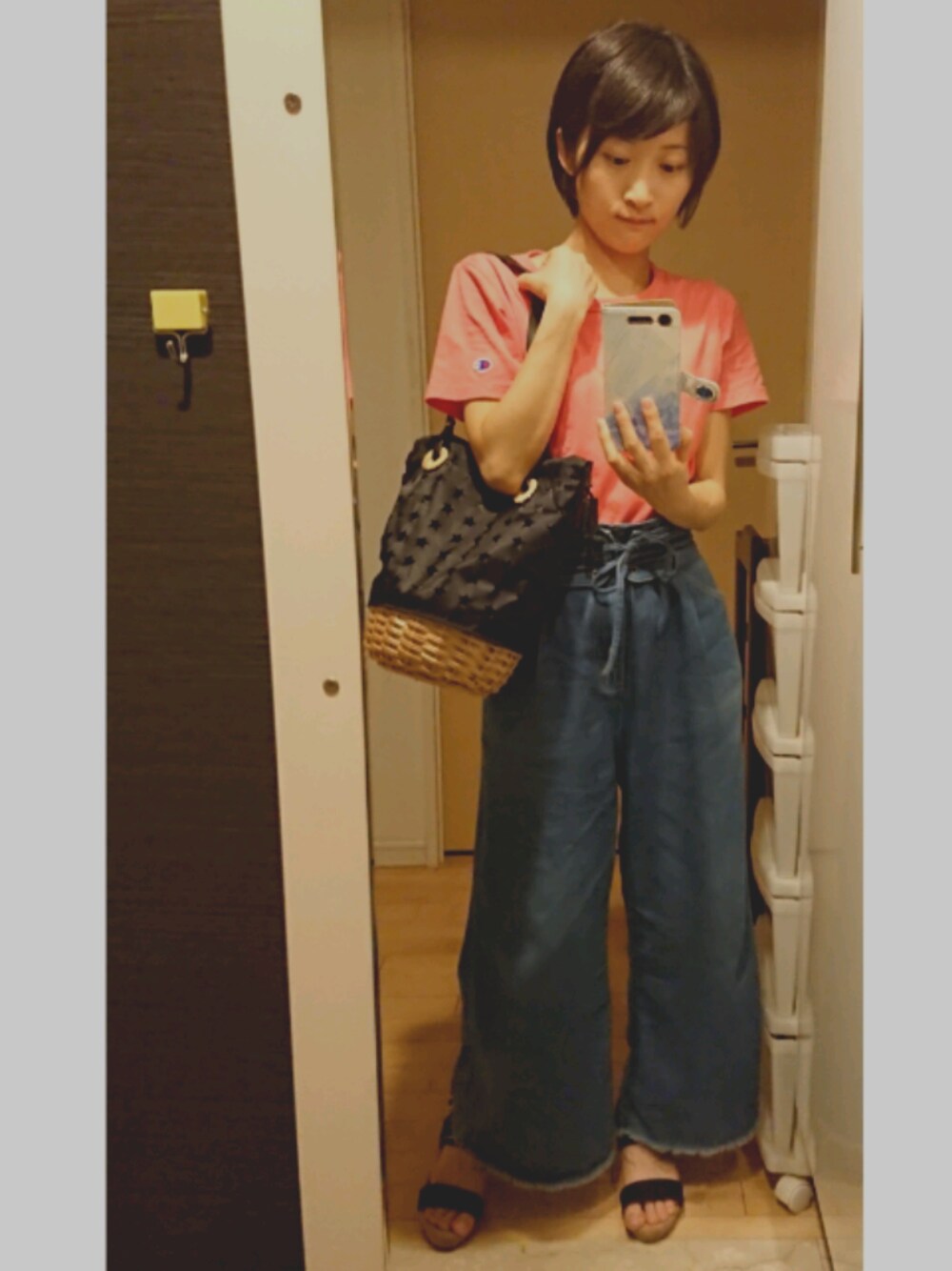 Championがシンプルなのでコルセットベルトでアクセントをつけました✩.*˚Tシャツ今年はいっぱい着マッス!!