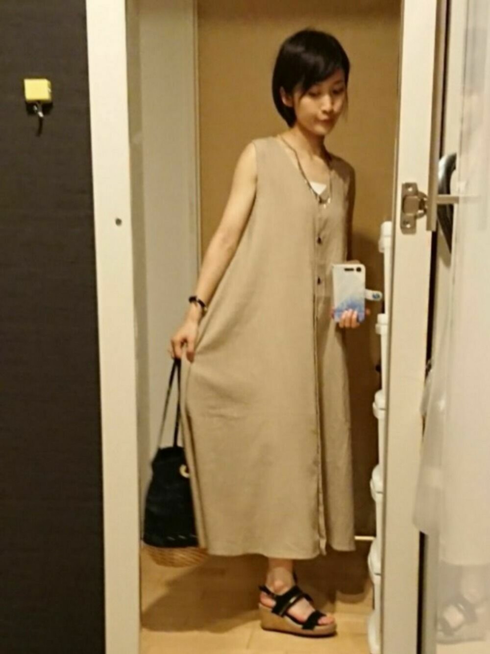 決意を新たにシリーズ②です! 麻調ワンピ🌻前開きでレイヤードも出来るものなんですが、今回はせっかくの初トライなので、1枚で潔く着ました✌️