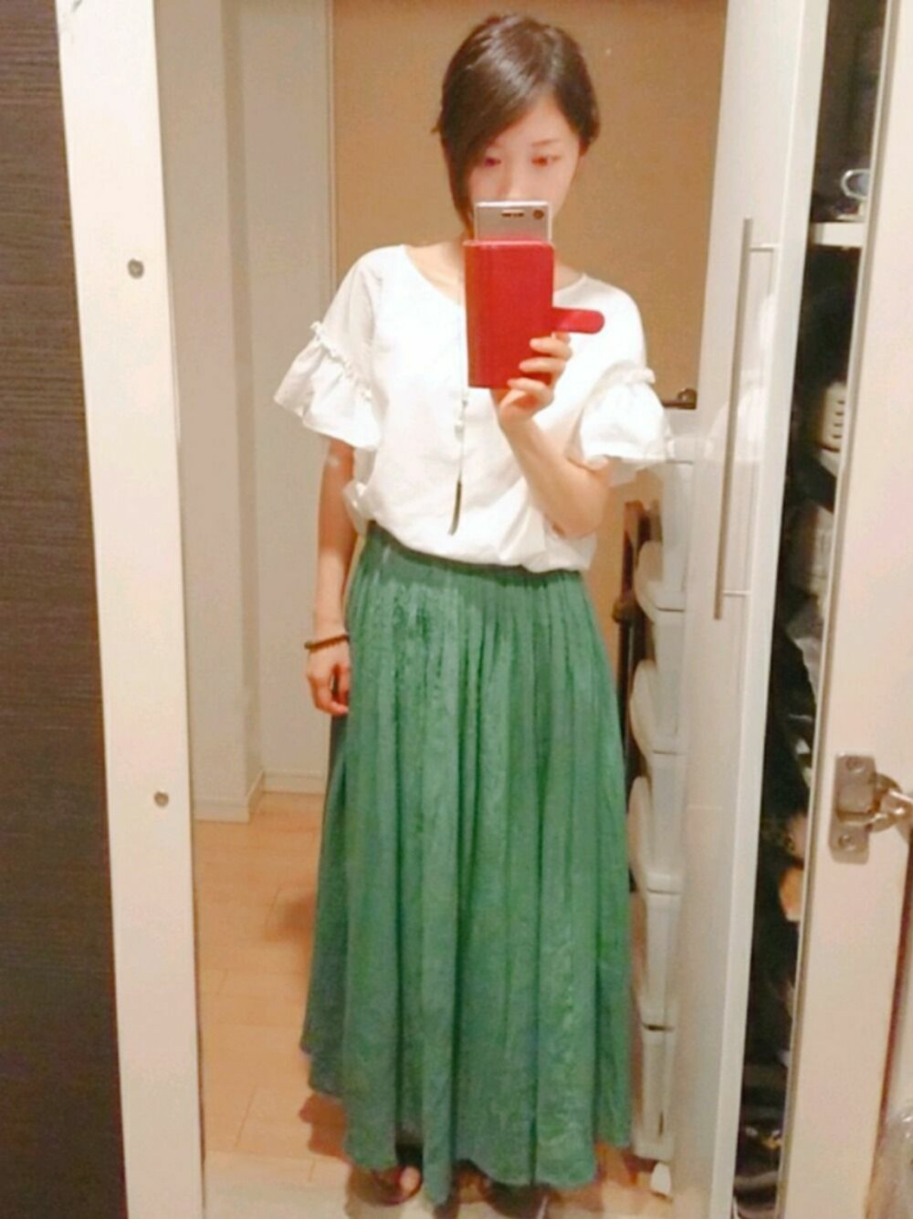 YURIEのスカート「スラブギャザーロングスカート」を使ったコーディネート