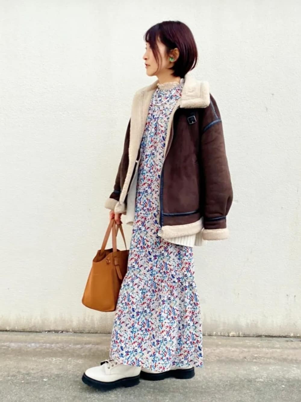 バザーで出会った素敵な蝶を装備𓈒𓂂𓏸🦋💚 3wayワンピースは羽織りとしても着用出来るので暖かくなるのが楽しみです︎︎!