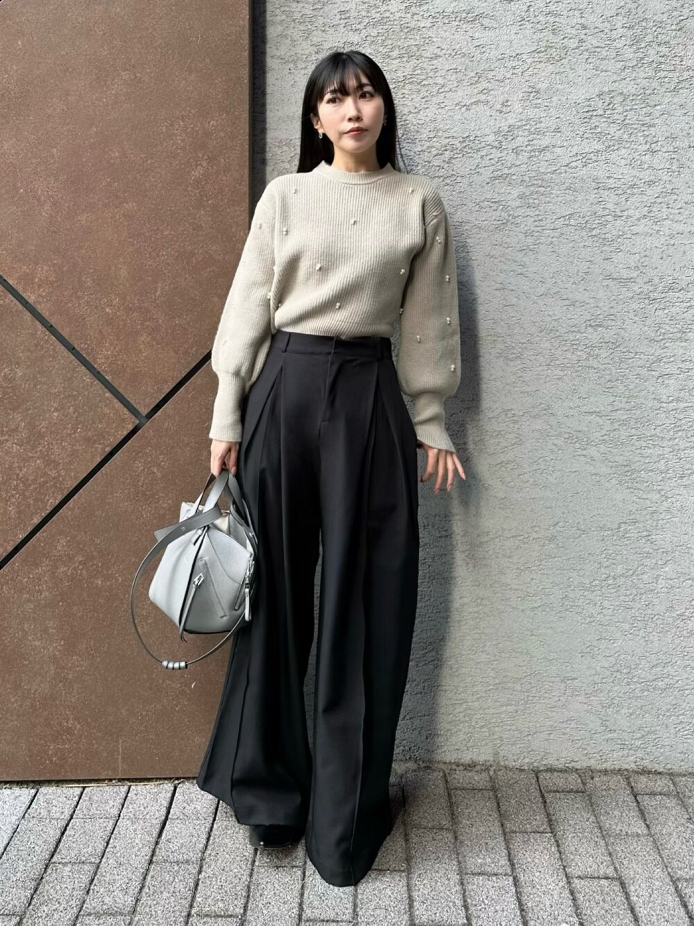 パールニットの甘さが可愛いので ブラックのスラックスで大人っぽくキレイめに✨ リップモンスターの新色💄がお気に入り♡