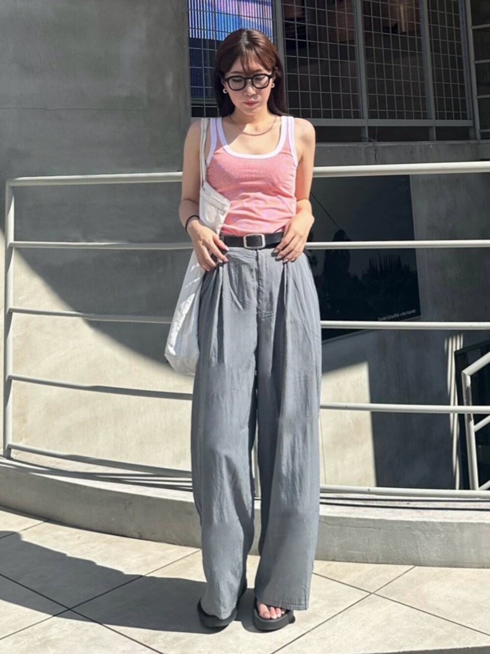 ORRの赤ボーダータンクに 軽くて涼しいLIENCOEURのグレーパンツでPOPな夏コーデ!