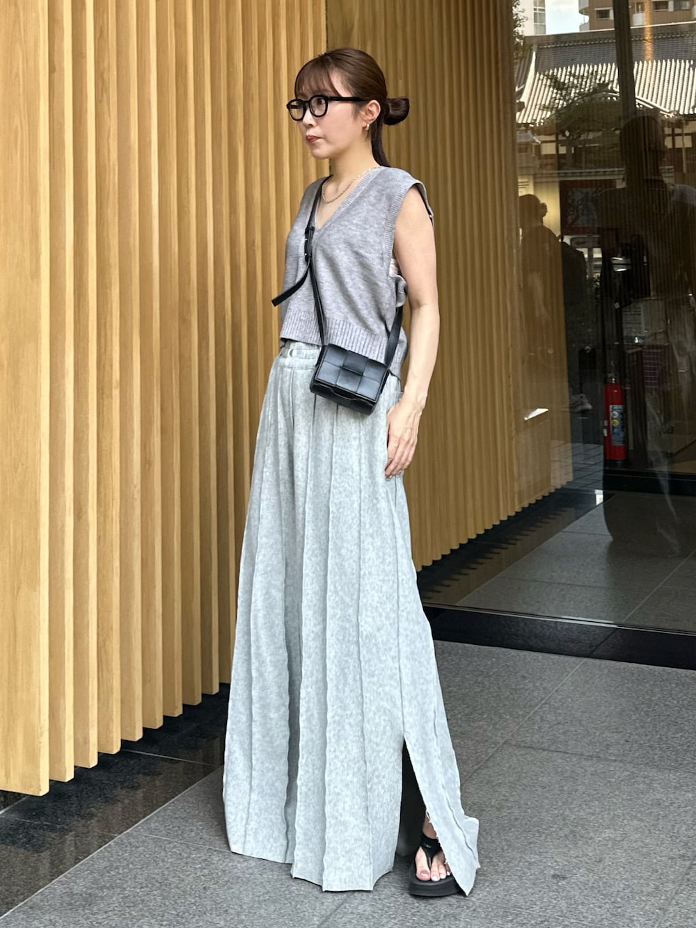 重くなりすぎない夏グレーが可愛い♡ 小物をブラックで締めてゆるくなりすぎないスタイリングに!