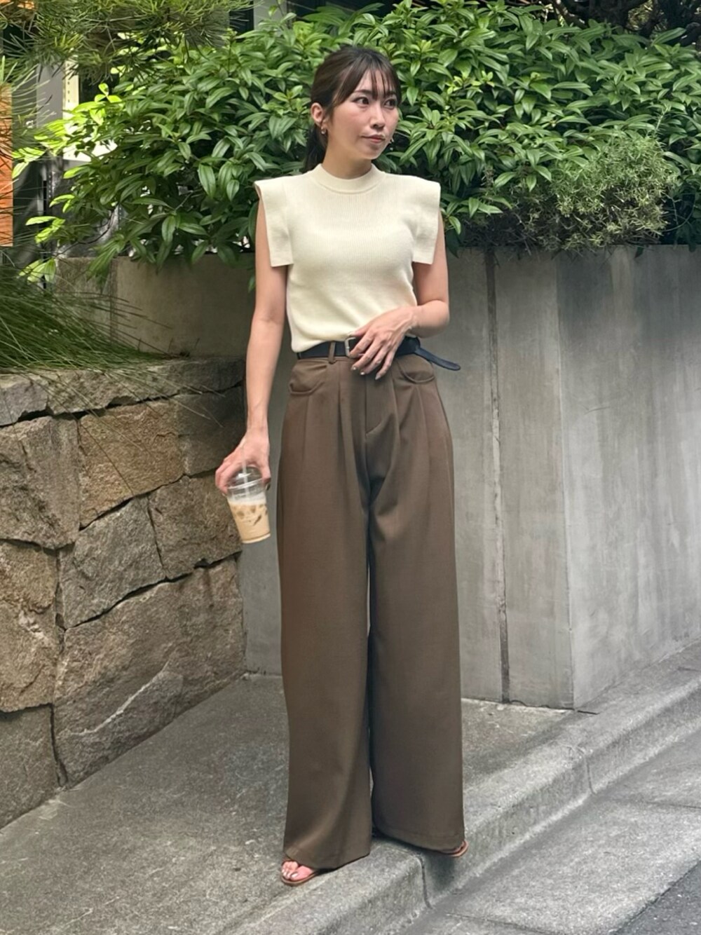 いつもアイボリーのアイテムにブラックで合わせがちなので、ブラウンのパンツとサンダルで柔らかくきれいめに✌🏻✨