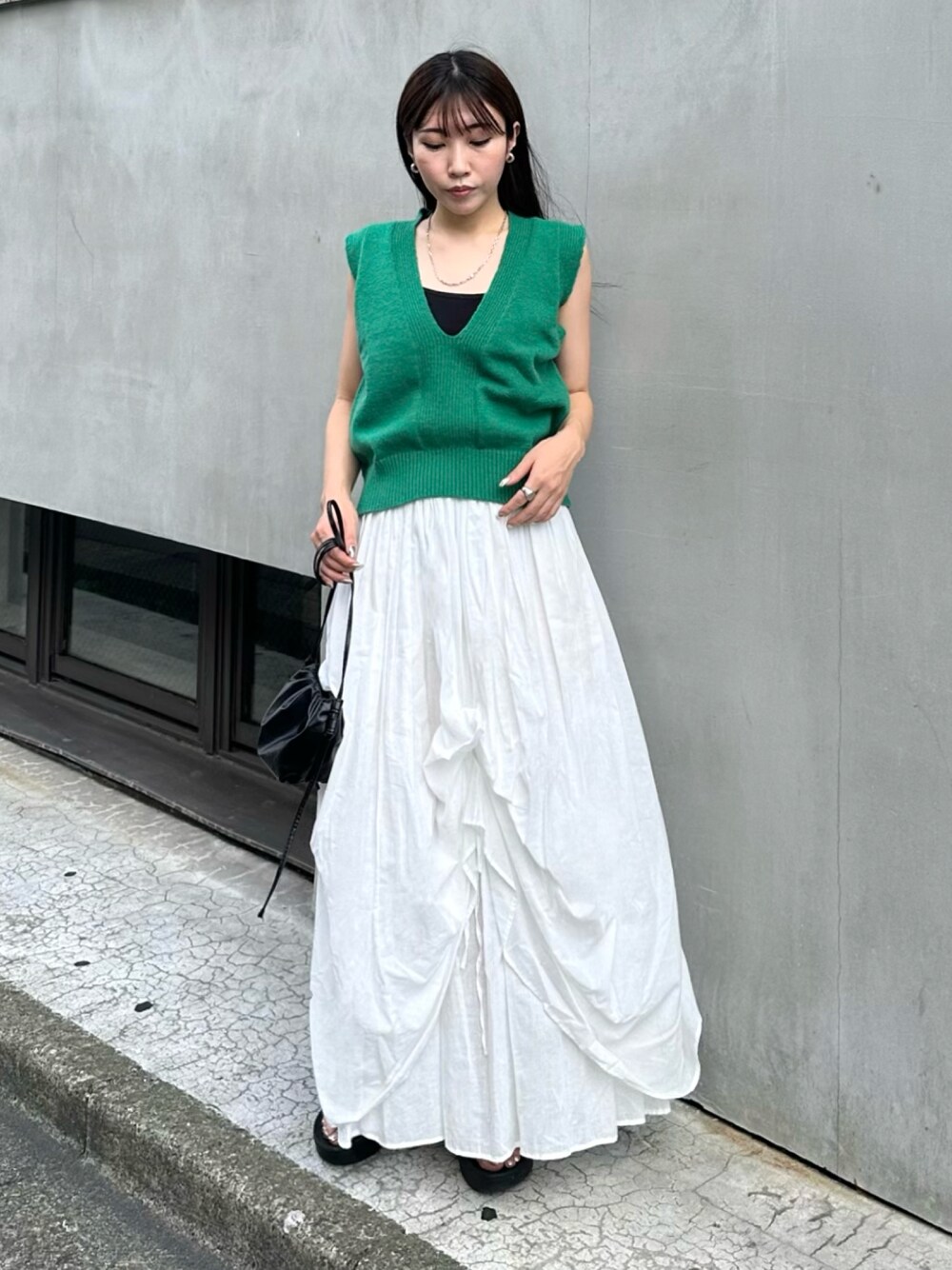 Mamiのベスト「深Vネックメルヘンニットベスト」を使ったコーディネート