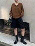 オーバーサイズのニット×ハーフパンツ×ブーツ 今年の秋の定番スタイリングになりそう👢🧶🫶🏻