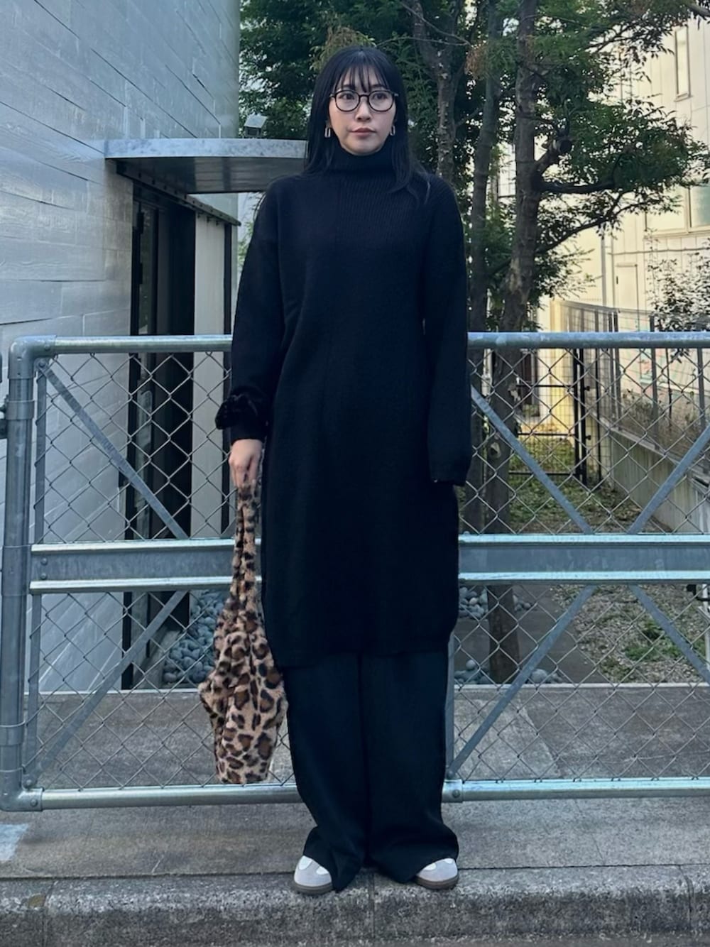 ニットワンピを同色のパンツに合わせて防寒&かっこよく🐆🖤